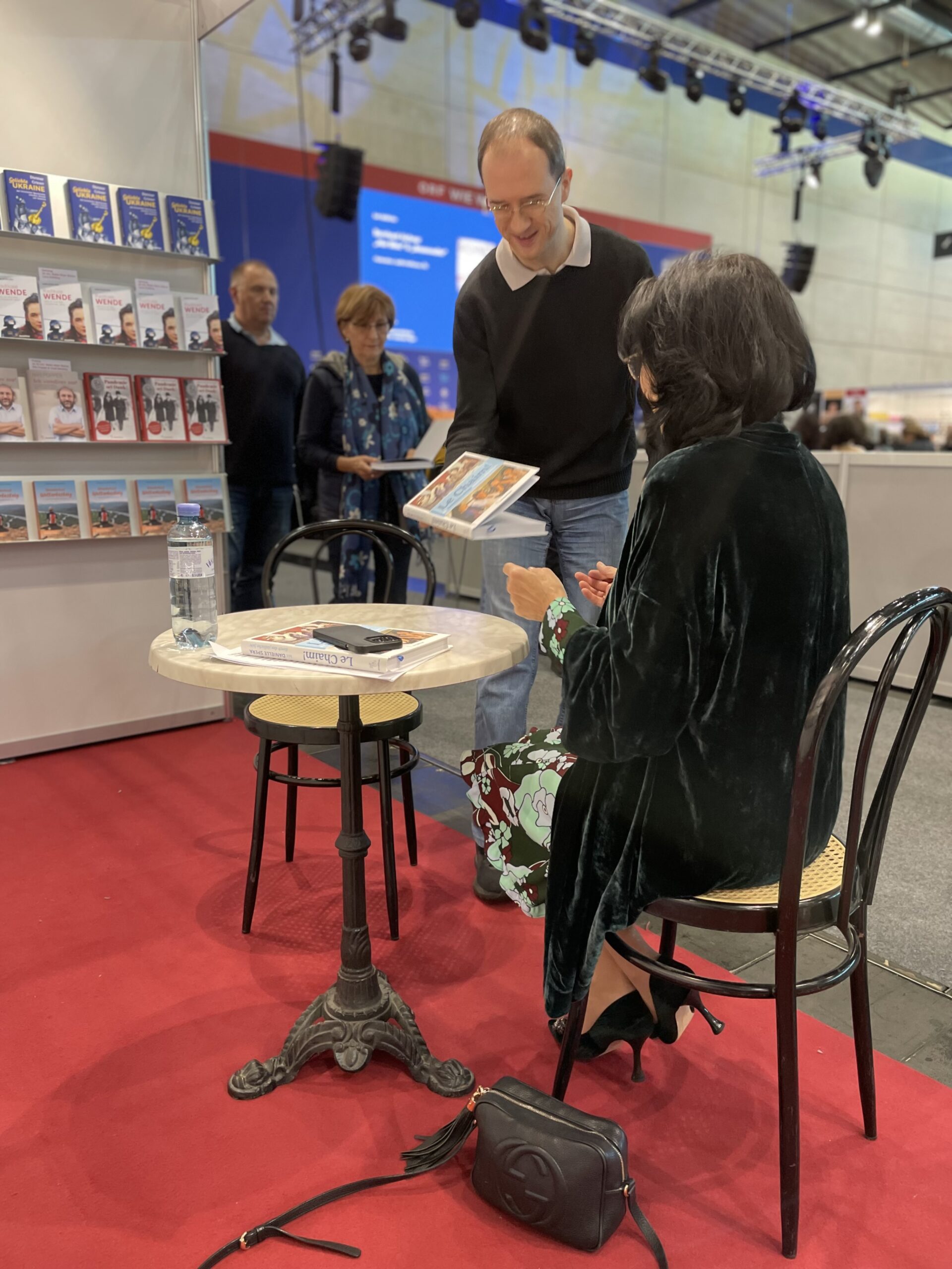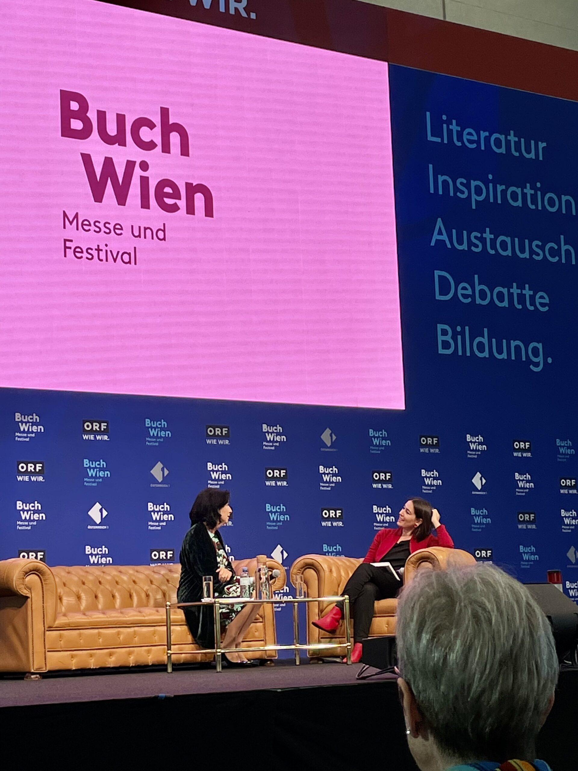 Mit großer Freude durfte ich bei der Buch Wien über mein Buch „Le Chaim“ sprechen. Beeindruckend, wie sehr die riesige Messehalle mit einem ganz gemischten Publikum und einer interessierten und begeisterten Stimmung erfüllt ist. Die größte Buchmesse Österreichs erstreckt sich über fünf Tage, an denen renommierte Autorinnen und Autoren ihre Werke vorstellen. Die verschiedensten Verlage bieten ihre Produkte an, auf verschiedenen Bühnen finden Lesungen und Gespräche statt, in einigen Lounges kann man mit den Schriftstellerinnen und Schriftstellern zusammentreffen. Bemerkenswert fand ich die Anwesenheit von ausgesprochen vielen jungen Menschen und zahlreichen Schulklassen.